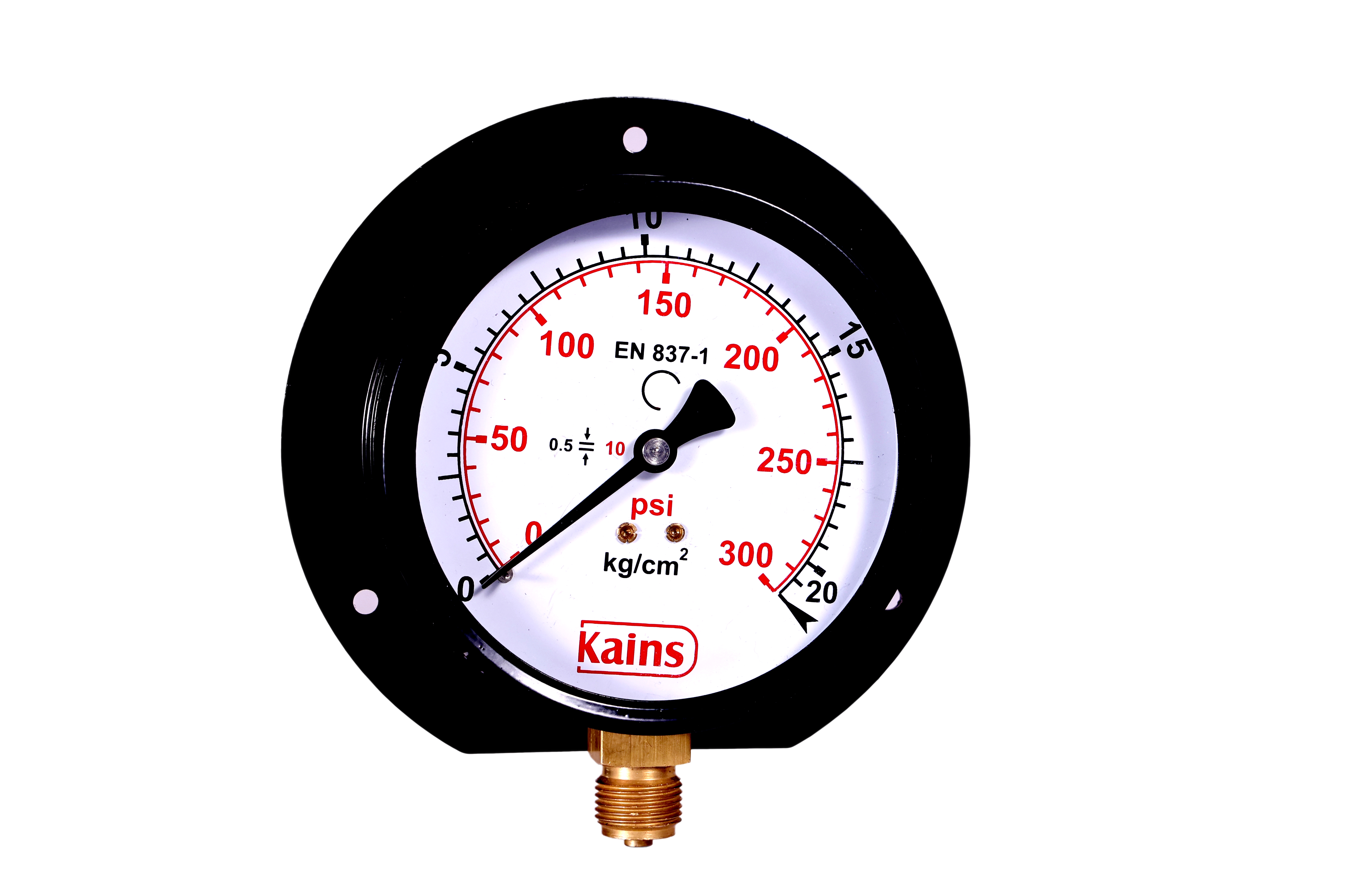 Kains is the original manufacturer for commercial quality pressure gauges specially for compressed air line. G01 011 model pressure gauges are manufactured with MS black coated case and bezel and brass measuring system. We can supply these gauges with customised logo for OEMs.